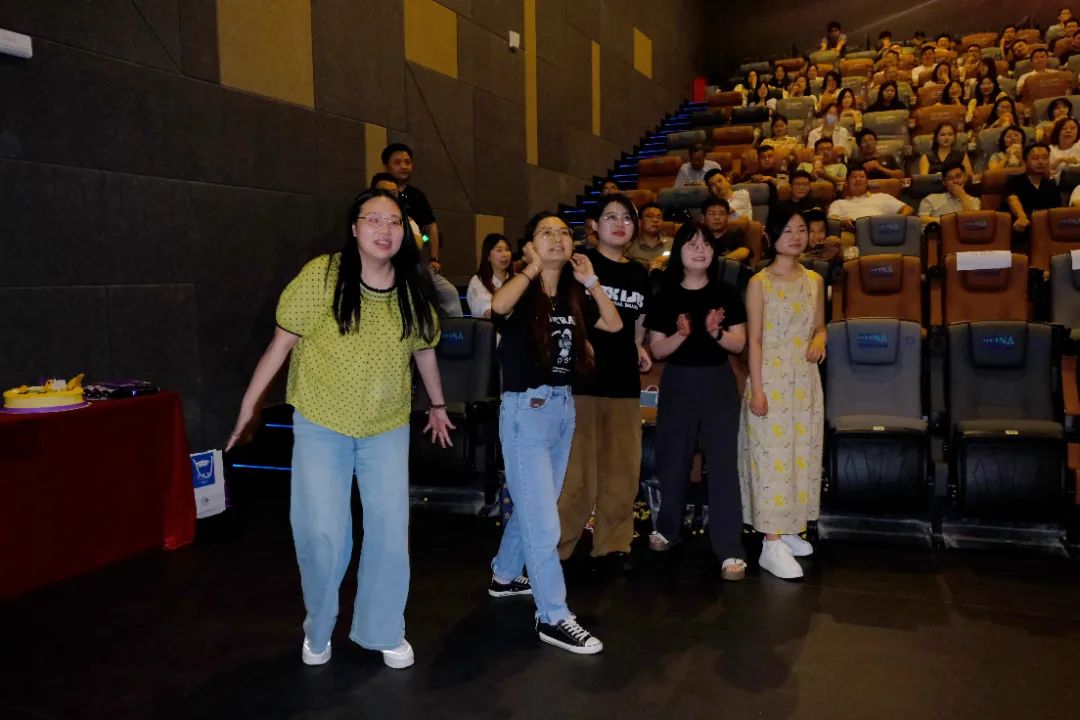當(dāng)《生日快樂》的旋律響起,5月份的壽星和蛋糕車緩緩入場(chǎng)。大家一同切蛋糕的環(huán)節(jié)溫馨又有愛。